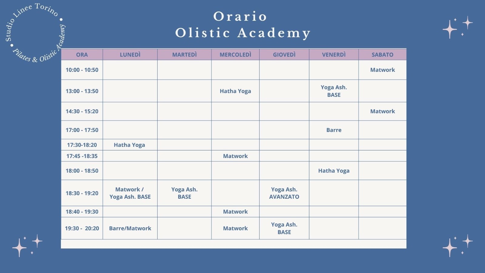 Orari delle lezioni Olistic Academy